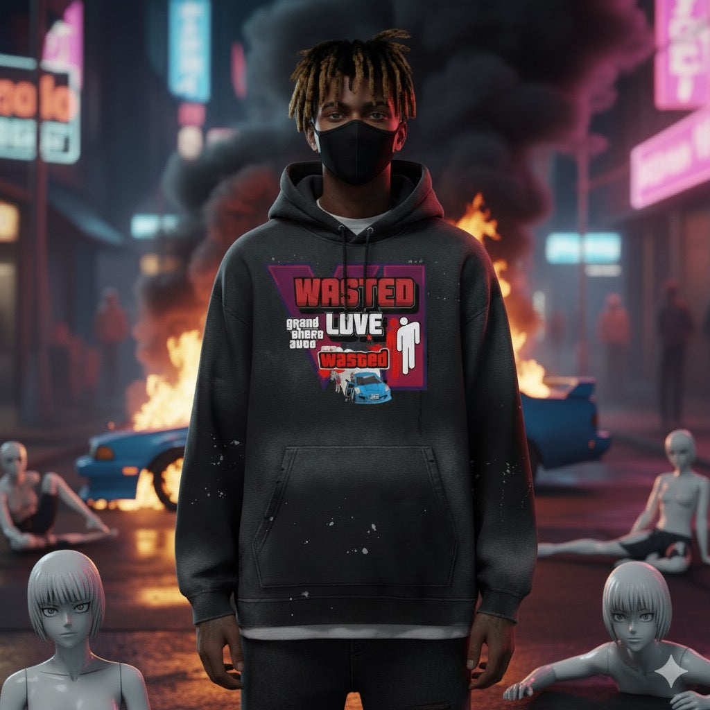 Wasted Vintage Washed Frayed Fleece Hoodie
